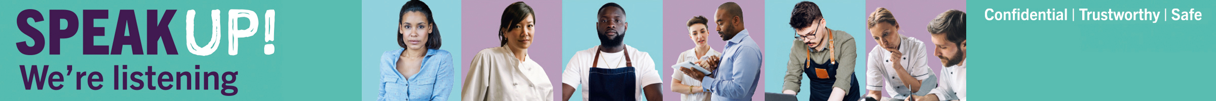 Speak Up, We’re Listeningは、コンパスグループの報告プログラムであり、私たちの企業行動規範(以下「規範」)やその他のポリシーに対する懸念や違反の疑いに関する報告を内密かつ匿名で報告することができます。